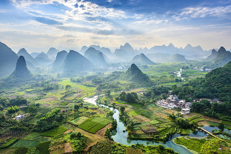 Pequeno-almoço buffet. Embarque num cruzeiro no Rio Li Jiang, navegando através de um cenário único repleto de arrozais, grutas, formações rochosas e povoações típicas. Encontre búfalos asiáticos a patrulhar os campos e cruze-se com os pescadores que flutuam em pequenas embarcações de bambu. Almoço em bolsa de piquenique a bordo e desembarque em Yangshuo, uma povoação encantada na margem do Rio Li Jiang. Passeie pela Rua Oeste, descobrindo o animado mercado de artesanato chinês, e descanse num dos diversos cafés de estilo ocidental. Regresso a Guilin. Alojamento.