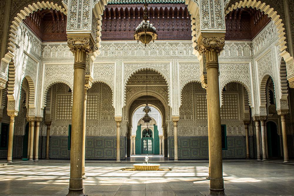 Pequeno-almoço. Visita da Medina de Fez, considerada por muitos a mais bela cidade medieval do mundo. Passeie por ruas estreitas com souks coloridos e aromáticos, fabulosos palácios, pequenas oficinas de artesanato e belas mesquitas. Conheça a “Attarine e Bou Anania Medersas” (as universidades islâmicas – entrada incluída); a fonte de Nejjarine, famosa pelos seus mosaicos; o Mausoléu de Moulay Idriss, rei de Marrocos e fundador da cidade; e o exterior da Mesquita Karaouine, uma das maiores do país. (Opção Pensão Completa: Almoço em restaurante tradicional na Medina). De tarde, continuação da visita. Jantar e alojamento.