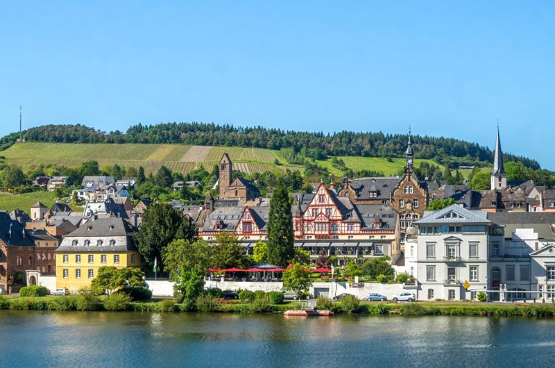 Pequeno-almoço. Uma das grandes surpresas deste cruzeiro é adentrar-se no vale do Mosela, um dos recantos mais pitorescos da Alemanha, com o seu rio serpenteante encaixado entre colinas repletas de espetaculares vinhedos em terraços. Logo pela manhã, chegada a Bernkastel-Kues, considerada uma das aldeias mais bonitas do país, com solos empedrados e coloridas casas de estrutura de madeira do século XVII. A Praça do Mercado com a câmara municipal, a Casa Pontiaguda, a Igreja e Fonte de São Miguel e o castelo Landshut do século XIII completam uma das visitas mais bonitas do cruzeiro, acompanhados pelo guia. Almoço, jantar e noite a bordo.