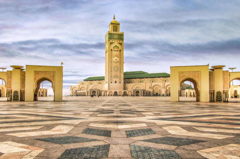 Desayuno. Visita panorámica de Casablanca, ciudad moderna y llena de vida: La Plaza de la Liga Árabe, la plaza de Mohamed V, el elegante barrio de Anfa y la Corniche, boulevard que discurre junto al mar. Terminamos la visita en la famosa y faraónica obra de la Mezquita de Hassan II (visita interior opcional, no incluida) donde destaca su impresionante techo y su minarete considerado el más alto del mundo. Salida hacia Rabat, capital del país, con su centro histórico Patrimonio de la Humanidad. Visita panorámica del Palacio Real (exterior), la Kasbah de los Oudaya y el Mausoleo de Mohamed V, junto al que se encuentra la torre de Hassan. Traslado a Fez. Cena y alojamiento.