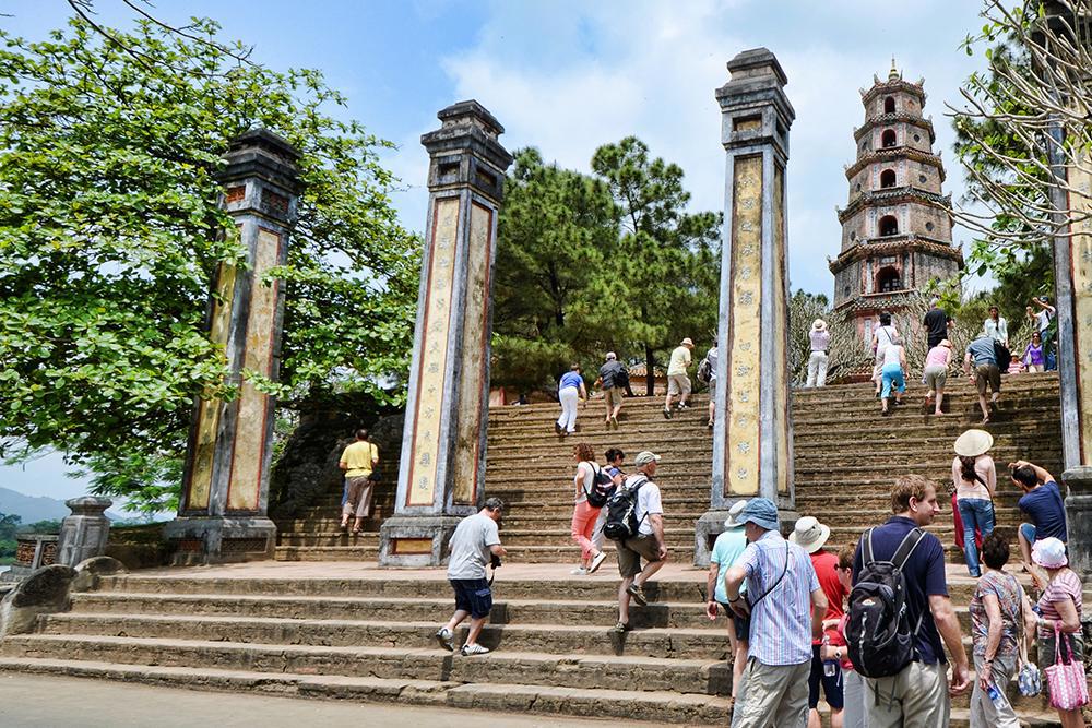 Pequeno-almoço. Saída em direção à antiga capital imperial do Vietname, percorrendo Hai Van (mar de nuvens), uma impressionante passagem de montanha, e pela pitoresca praia de Lang Co, com breve paragem para fotos. No caminho, realizaremos uma visita panorâmica de Danang com uma paragem para conhecer a famosa Ponte do Dragão, um marco emblemático da arquitetura moderna que atravessa o rio Han. Chegada e almoço em restaurante local. Pela tarde, visita ao mausoléu do imperador Tu Duc, um túmulo majestoso num cenário de floresta, e do imperador Khai Dinh, uma interessante mistura entra a arquitetura ocidental e oriental. De seguida, transfer ao hotel para check-in. Alojamento.