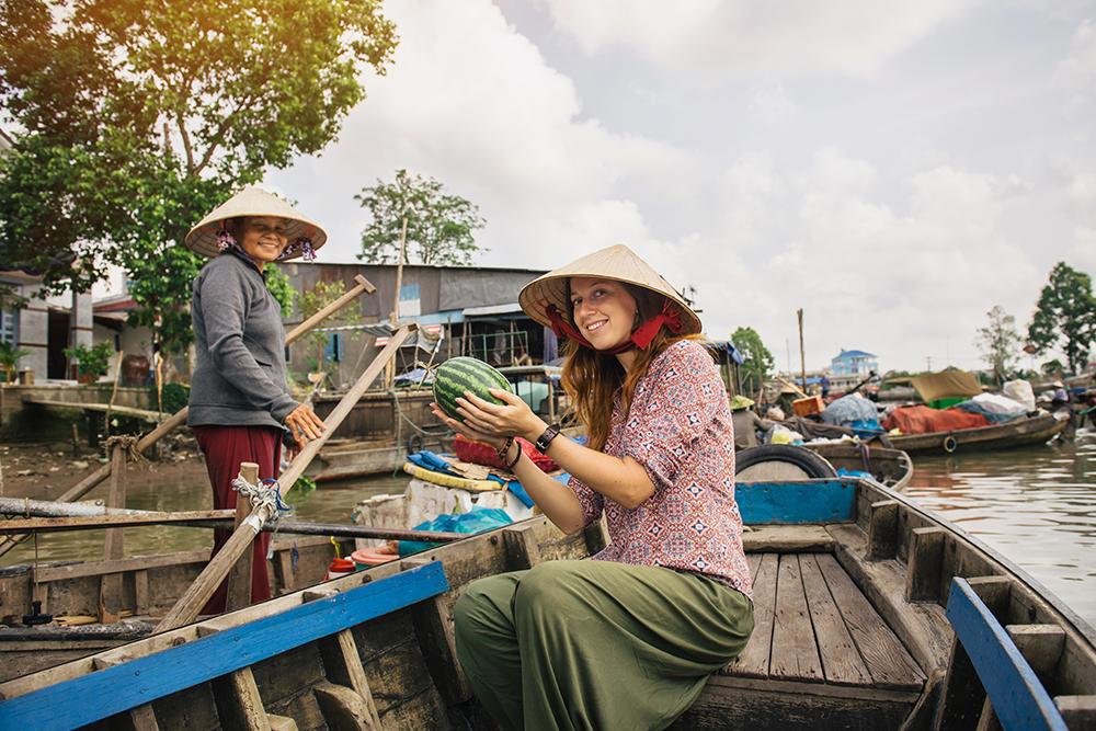 Pequeno-almoço. Partida para o espetacular Delta Mekong, a cerca de duas horas de distância de Ho Chi Minh. Deixe as ruas buliçosas e animadas de Saigão para trás e aventure-se num agradável percurso até à província de Ben Tre. Entre a bordo de um barco (1h30 aproximadamente) que o levará por canais estreitos, rodeados de densa vegetação, até ao coração do Delta. Um lugar verdadeiramente único onde a vida se desenrola à volta do rio. Ao longo do dia, saboreie as frutas exóticas cultivadas nas hortas do Delta, prove o vinho de arroz caseiro, o mel e os caramelos de coco feitos em fábricas familiares. Desembarque e realização de um passeio num carro “Xe Loi”, uma espécie de rickshaw. De seguida, viva uma experiência incrível numa pequena embarcação a remos, abrindo caminho por entre os canais do Delta. Almoço em restaurante local e regresso a Ho Chi Minh por estrada. Visita panorâmica da cidade, passando pelo Palácio da Reunificação (visita exterior), pela Catedral de Notre Dame e pela antiga Estação de Correios, de estilo colonial, desenhada por um discípulo de Gustave Eiffel. Alojamento.